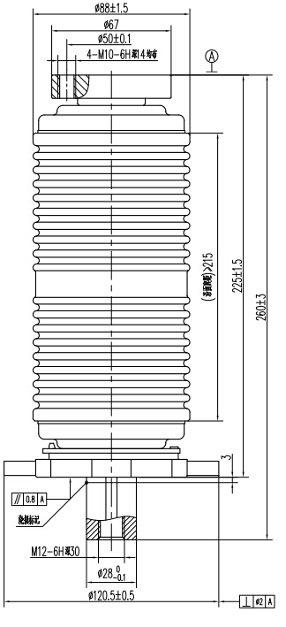 額定短時(shí)(1min)工頻耐受電壓(Ud)kV48